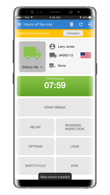 El dispositivo Ready Fleet ELD rastrea y registra automáticamente el tiempo de conducción