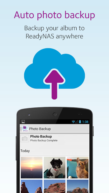 * Automáticamente copias de seguridad de fotos de la cámara roll a tu ReadyNAS