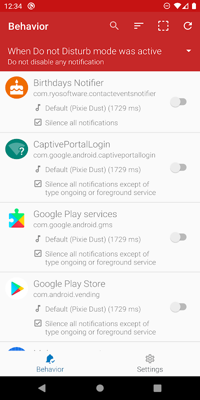 La solución que proponemos, que (parcialmente) resuelve el problema, es proponer que seleccione qué aplicaciones desea silenciar cuando el dispositivo está en "modo no molestar" y, para cada una de esas aplicaciones, indique el sonido de notificación que utilizan , lo que nos permitirá calcular el tiempo aproximado que tenemos que silenciar el dispositivo para evitar que se escuche la notificación.