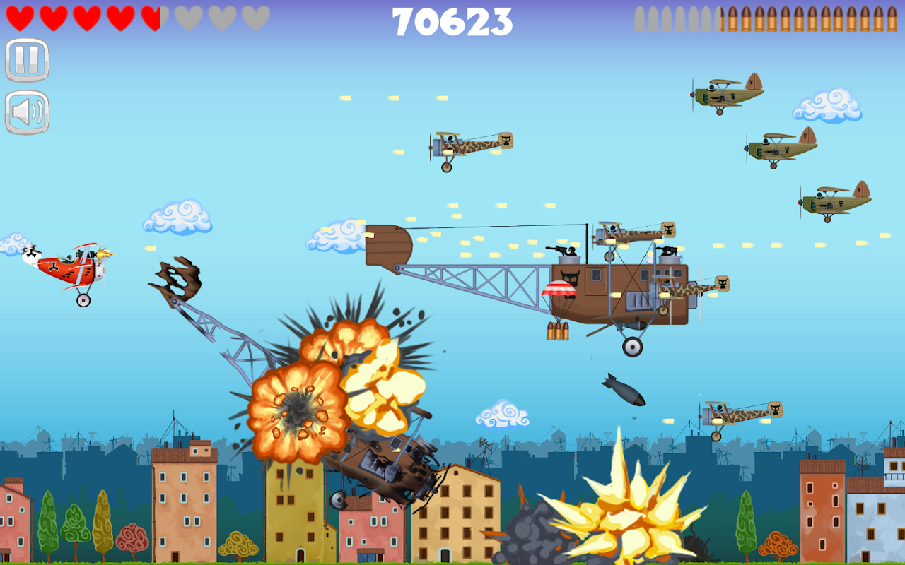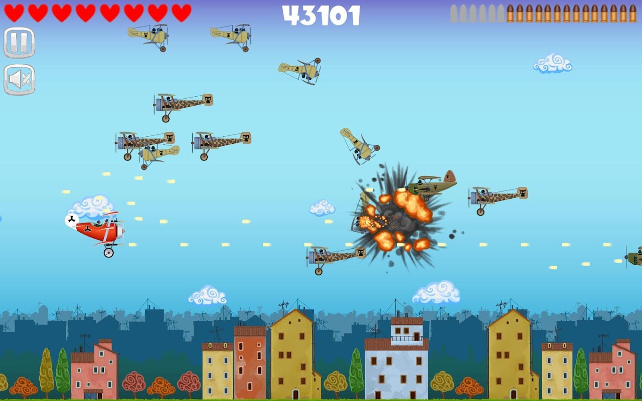 Se pone de pie contra las hordas enemigas de combatientes, biplanos y bombarderos! Aerostatos, zeppelines y cañones antiaéreos intentarán detenerte.