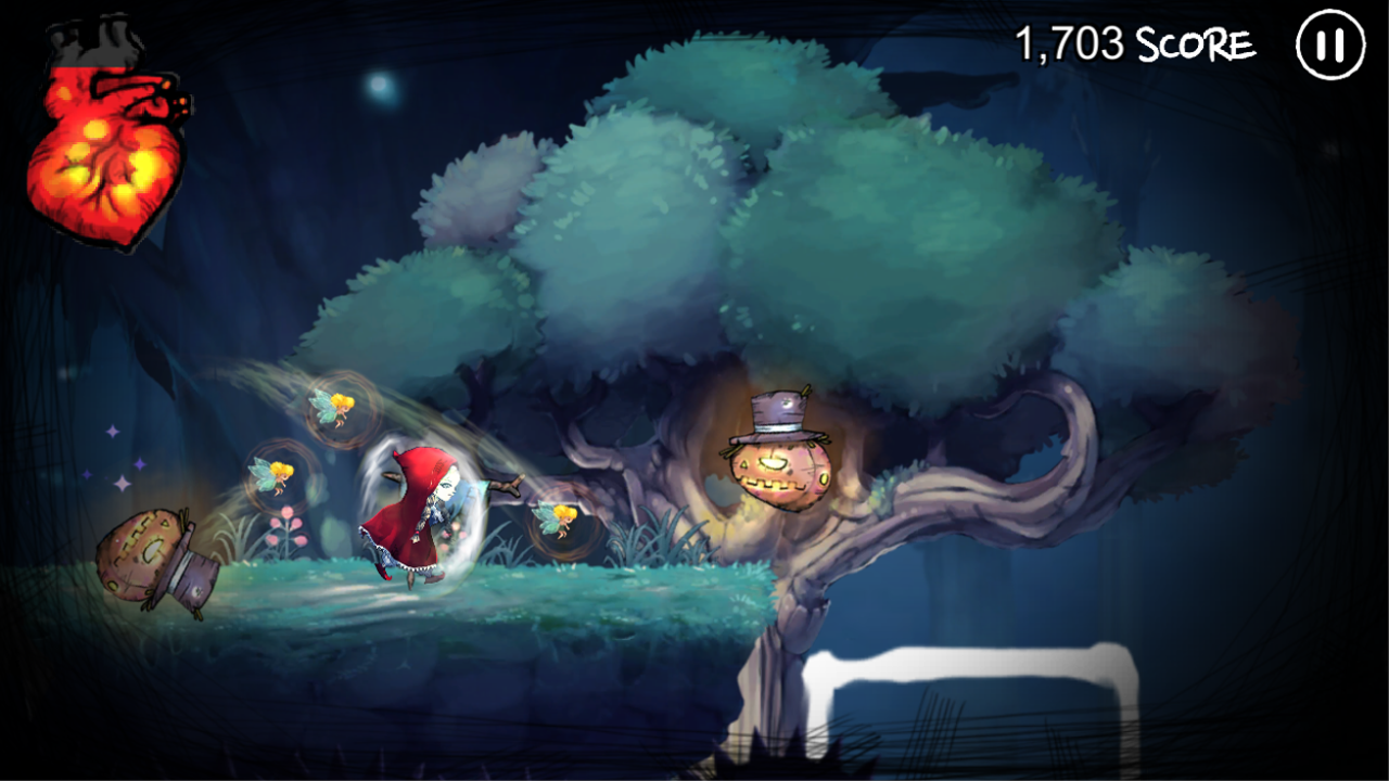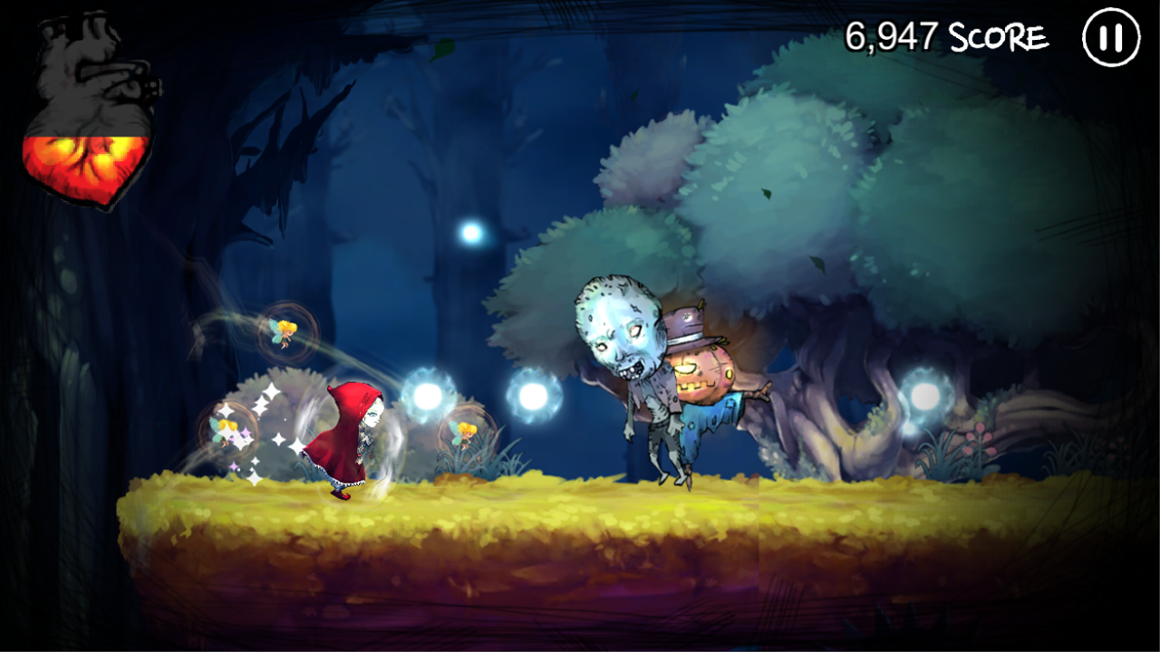 *소녀는 어둡고 위험한 숲을 지나 할머니에게 달려가야 합니다.