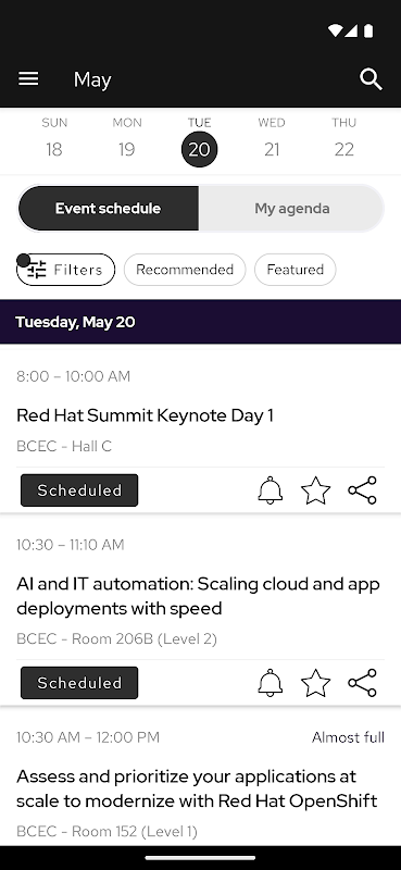Descargue nuestra Guía oficial de eventos de Red Hat para aprovechar al máximo la experiencia de su evento. Esta aplicación incluye: