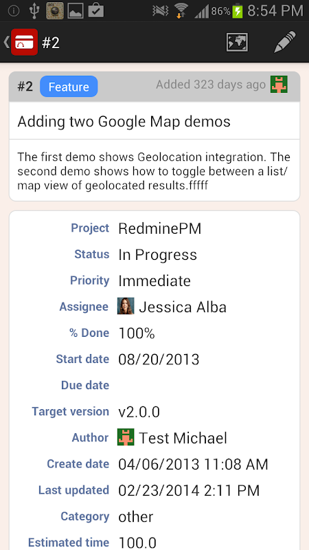 Puedes acceder a las funciones básicas de la versión web de Redmine (crear incidencias, actualizar, referenciar).