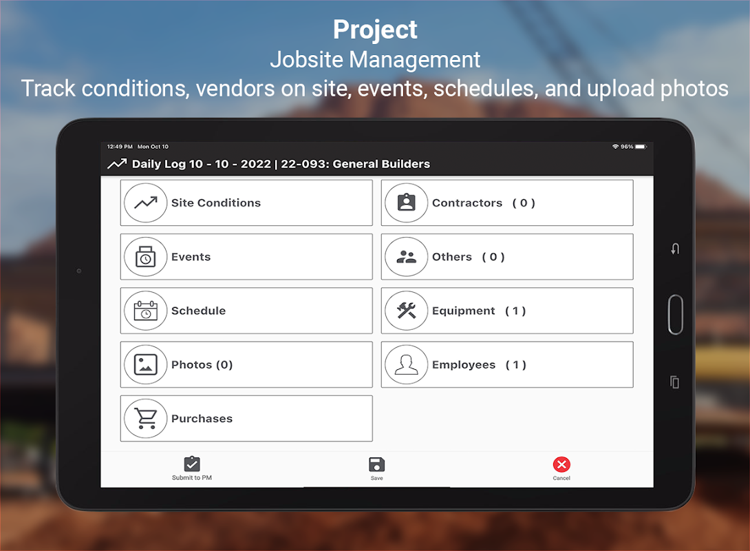 El software de administración de construcción basado en la nube de RedTeam Go en su teléfono y tableta Android lo ayuda a pasar sin problemas de la oficina al campo. Con una solución móvil de administración de la construcción, ahora puede moverse por el lugar de trabajo y mantenerse actualizado con la información más reciente del proyecto, sin importar dónde se encuentre. Ideal para usar durante recorridos de campo y operaciones en el sitio. Con solo unos pocos toques en su iPhone o iPad, se puede acceder fácilmente desde un solo lugar a dibujos, registros diarios, RFI, tarjetas de tiempo, listas de pendientes y todos los documentos relacionados con el proyecto.