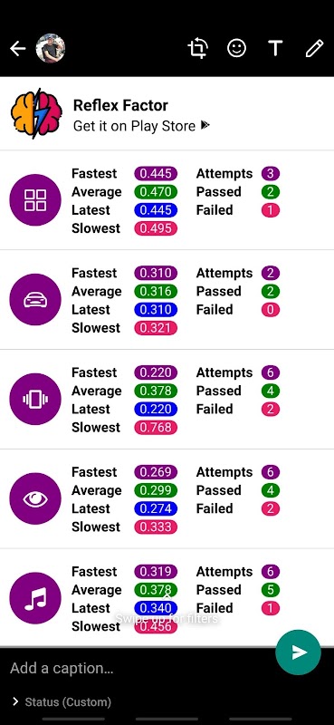 Reflex Factor allows you to test and train your reflexes to audio, visual or haptic cues. The app also includes the grid and race start challenges which test your nerves and peripheral vision. The app tracks your performance to generate stats for each of the challenges