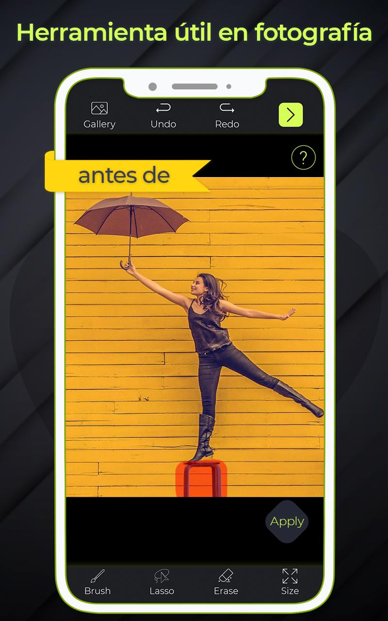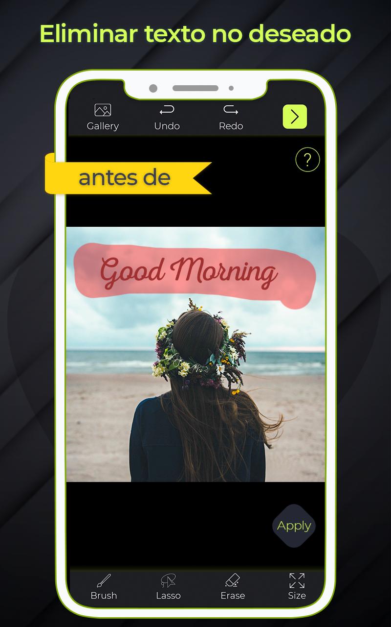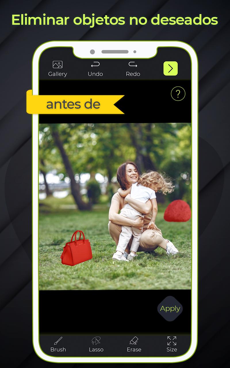 Esta es la nueva aplicación de eliminación de objetos que utiliza métodos avanzados para eliminar objetos no deseados de sus fotos. Eliminar objetos no deseados lo ayuda a deshacerse de los objetos que obstruían la vista de cualquier parte de su imagen y le permite eliminar cuidadosamente cualquier cosa que no desee. Puede borrar objetos, personas, texto y pegatinas con la ayuda de este borrador mágico. Su herramienta de pincel o lazo le permite eliminar objetos no deseados con solo la punta de su dedo y no afecta la calidad o los píxeles de una imagen. Esta eliminación de objetos nunca eliminará ni reemplazará sus fotos sin su permiso y guardará sus fotos antiguas después de eliminar contenido innecesario de una foto como una nueva. Puede rehacer y deshacer los pasos que ha realizado. Descarga Remove Unwanted Object y disfruta de la mejor aplicación de eliminación de objetos.