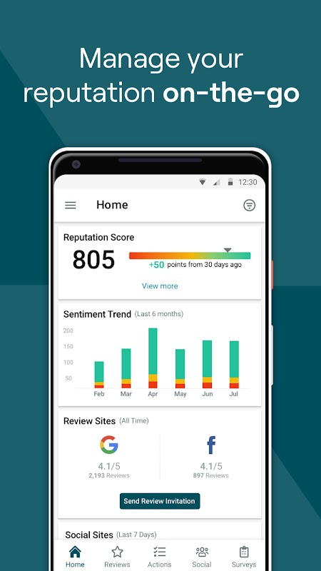 Administre la reputación de su ubicación y mejore la experiencia de sus clientes desde cualquier lugar con la aplicación móvil Reputation. Con la aplicación puedes: