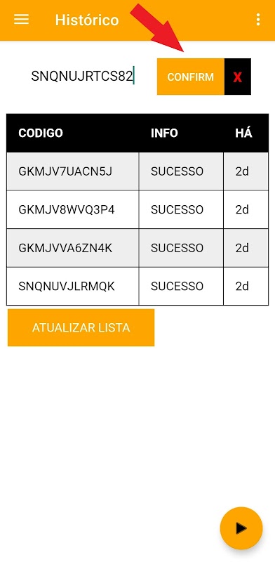 Histórico dos códigos resgatados!