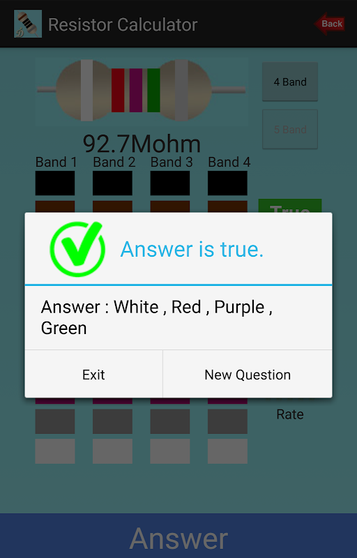 Resistor Calculator es una aplicación que calcula el valor de resistencia seleccionando los códigos de color en la resistencia. El valor de la resistencia cambiará después de que haya elegido los valores de color para cada banda de color. Puede ver los colores cambiantes de las aplicaciones contenidas en resistencia. Si especifica un color para la tolerancia, se muestra el rango de selección de resistencia. La aplicación está diseñada para ser de uso práctico. Puede elegir su código de color de resistencia con las opciones de 4 bandas y 5 bandas.