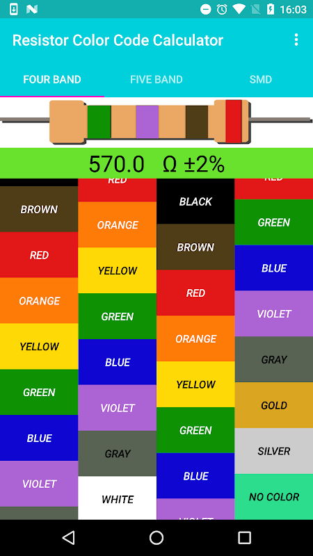 From this application, you can find the value of 4 bands and 5 bands resistor color code with tolerance value and also find the 3 digit,4 digit and EIA-96 standard SMD resistor code value.This Application specially developed for an engineer, student, electronics tester and Arduino or Raspberry Pi enthusiast when working with electronics.This Application can be helpful when you are working with electronics projects and testing of electronics.This Application supported up to 18 different county language like Afrikaans, Arabic, Bengali, German, Spanish, French, Hindi, Hebrew, Japanese, Koreans, Malay, Russian, Swedish, Turkish, Ukrainian, Urdu, Vietnamese and Chinese.