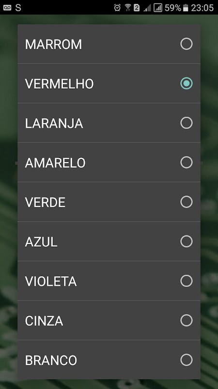 Esta aplicación realiza la identificación de resistencias de cuatro bandas. Para ello basta con seleccionar cada color con un simple toque sobre el rango deseado de la resistencia que se muestra en pantalla.