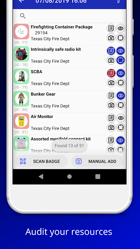 Toma el control mediante el seguimiento de sus recursos en el campo con aplicación de gestión de recursos móviles de TRG. Establecer la responsabilidad de los recursos de entrada con \ a cabo con herramientas de exploración placa. capacidades fuera de línea con una herramienta para sincronizar sus cambios cuando vuelva a una conexión de datos. Verificar sus recursos y actualizar su estado por áreas de auditoría de la operación.