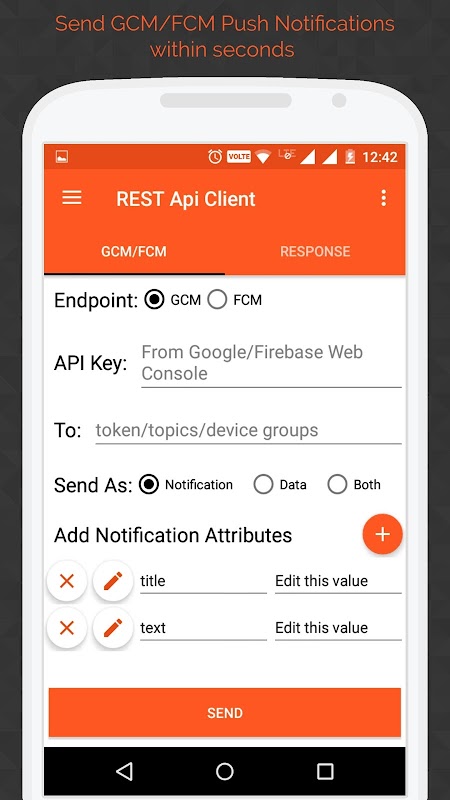 • Enviar Google mensajería en la nube (GCM) Mensajes de bajada es decir, notificaciones Push a los dispositivos registrados con Firebase mensajería en la nube (FCM) de soporte de punto final.