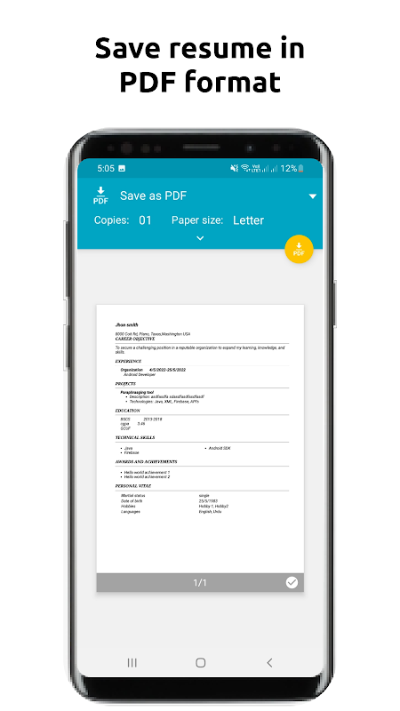 With its numerous templates, features and formats for creating CV, Resume Maker facilitates your career advancement. The app is a complete solution for job seekers and offers a professional and effective way to showcase your skills and career.