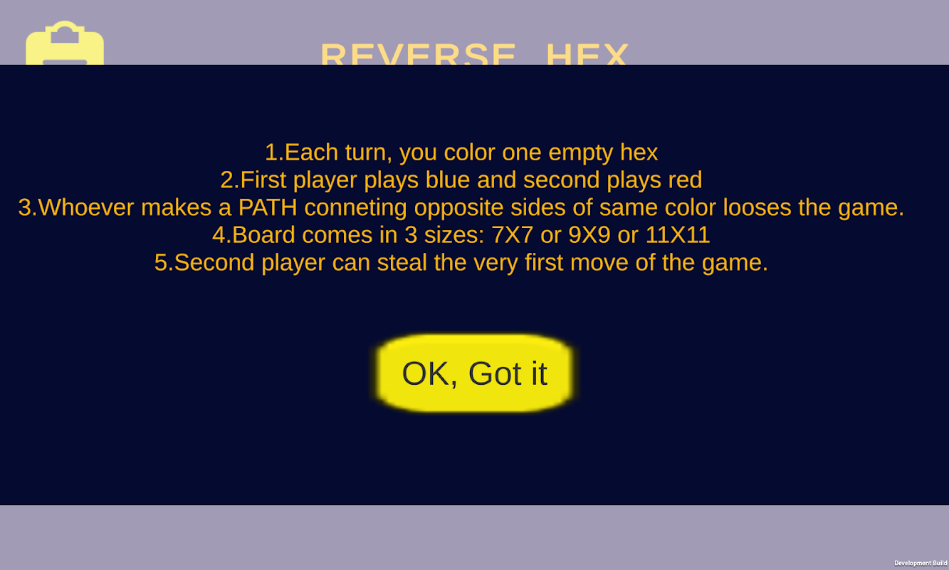 Reverse Hex es un juego para dos jugadores. Las reglas son simples, este juego se puede aprender rápidamente. Esto podría ser realmente divertido de jugar para todos los grupos de edad.