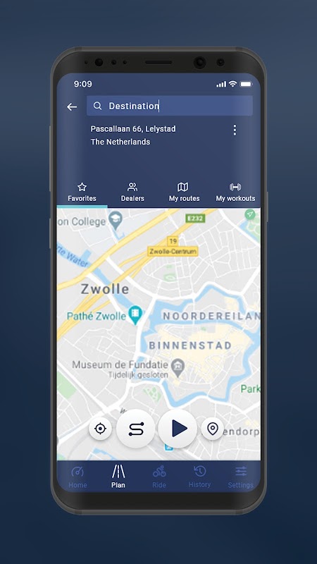 Utilice la aplicación RideControl para una navegación paso a paso diseñada específicamente para la bicicleta. Si su E-Bike está equipada con una pantalla RideControl EVO compatible, puede sincronizar la navegación giro a giro con su pantalla, por lo que no es necesario tener su teléfono a mano.