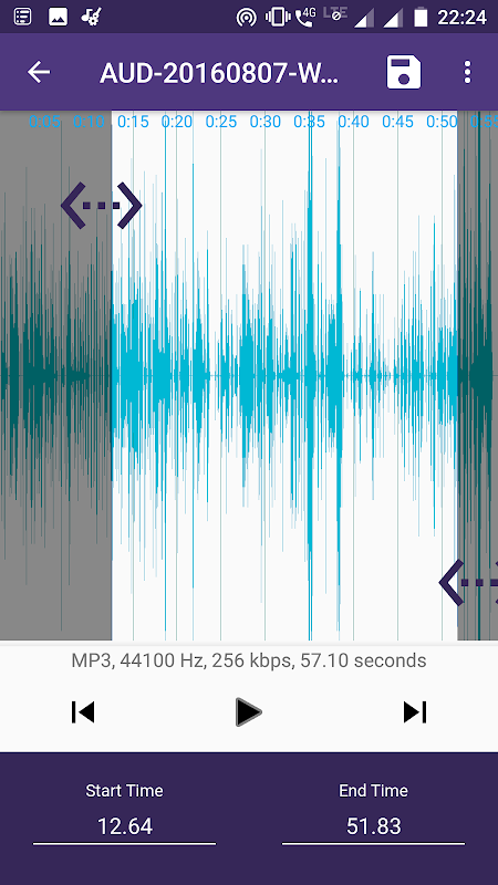 Puede editar audio y configurarlo como tono de llamada predeterminado, alarma, notificación.