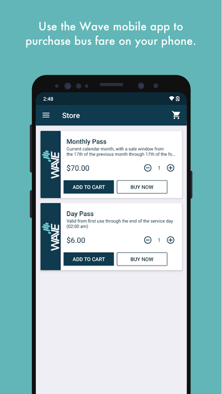Con la nueva aplicación RIPTA Wave, puede comprar tarifas RIPTA de forma segura en segundos. Comprar tarifas es fácil: ingrese la información de su tarjeta de pago, cargue dinero en su cuenta Wave y su teléfono inteligente es su boleto para viajar. RIPTA también ofrece pases diarios y mensuales. Cuando esté listo para abordar el autobús, abra la aplicación y escanee debajo del validador.