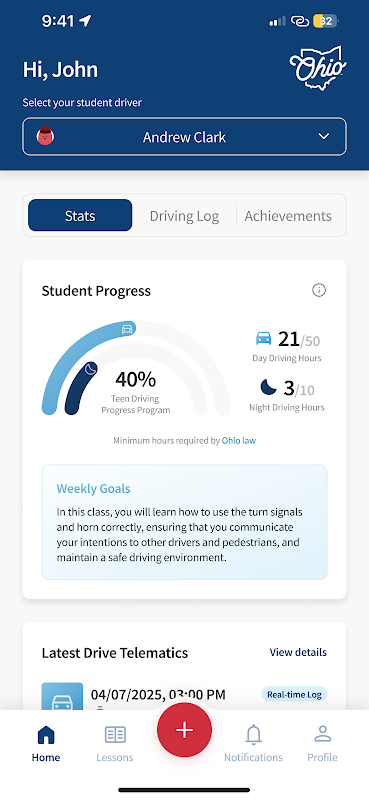 ● Gamificación atractiva: Gana insignias por logros como la conducción segura o la finalización de módulos de formación, manteniendo a los estudiantes motivados y a los tutores informados. ● Amplio contenido educativo: Acceda a guías de manejo específicas de Ohio, incluyendo videos, archivos PDF y lecciones escritas sobre manejo defensivo, señales de tránsito y consejos para conducir de noche.