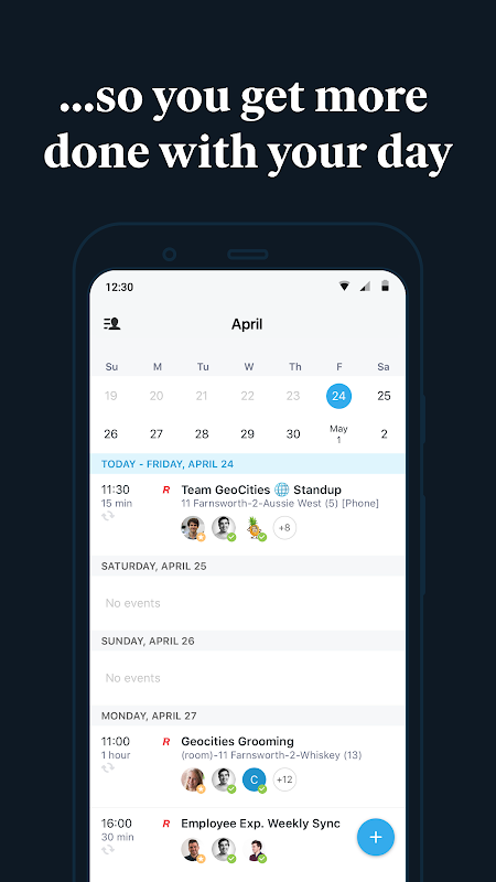 A medida que ingresa a su oficina, reserve un escritorio para trabajar desde el día en un mapa interactivo dentro de la aplicación Robin. Eche un vistazo a su horario diario, con información más detallada sobre en qué salas de conferencias se llevarán a cabo sus reuniones. Encuentre una sala de reuniones disponible sobre la marcha sin tener que abrir su computadora portátil, y revise la foto y los servicios de una sala para saber exactamente qué esperar en el espacio.