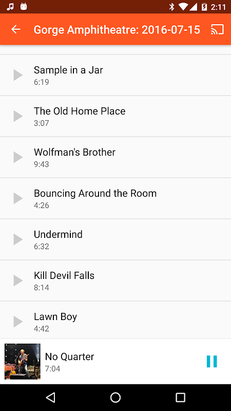 Juega más de 1,500 shows de Phish en vivo y más de 3,500 horas de música en tu teléfono Android. Utiliza la API Phish.in.