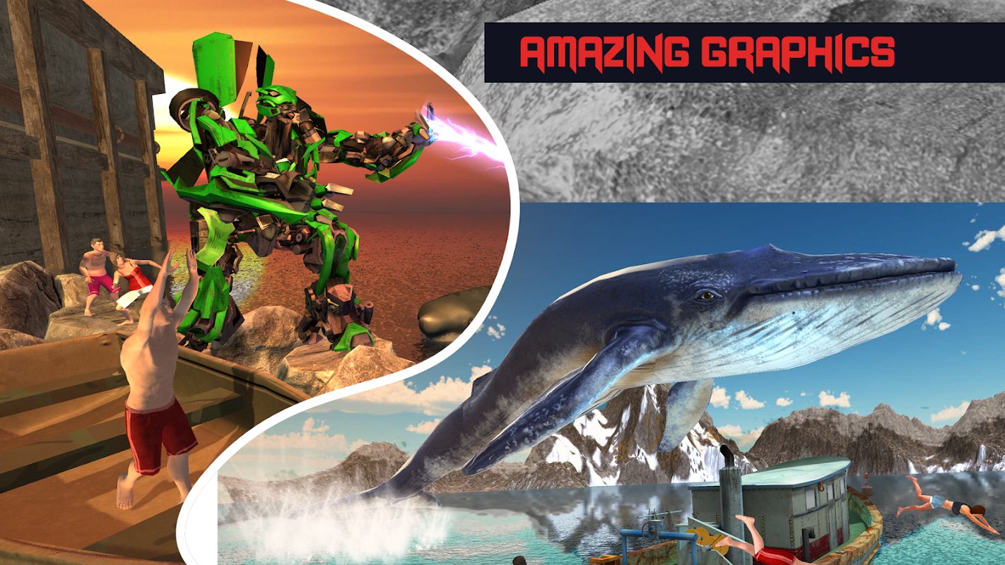 En Robot X Vs Ataque de ballenas azules que participará en misiones reales de rescate de playa como un robot robot futurista o robot moto vigilante que tiene que rescatar a la gente inocente navegación en el color azul contra la ballena azul o los tiburones sedientos de sangre y tiburones blancos. Ser un verdadero superhéroe militar o robot altamente destructivo robot de músculo equipado con armas altamente avanzadas autobots y erradicar rápidamente todos los tiburones enojados o megalodon altamente peligroso junto con otro monstruo marino y cumplir con la misión de rescate. Así que prepárate para descargar este año de tendencia superior juego.