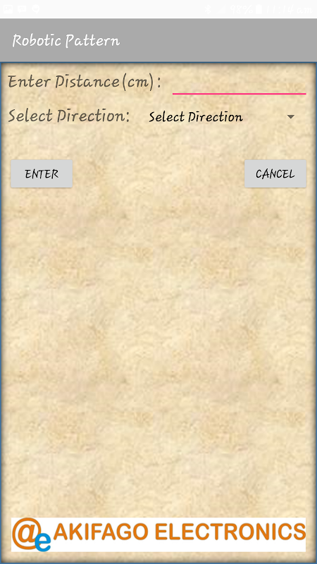 The Robotic Pattern Control Application works using Assigned Distances and Directions. The User after placing the desired patterns, simply connects the Mobile Phone to the Robotic System Via Bluetooth Technology. Once connected, the Start Button is then Clicked to start the control process Automatically. To Remove any Placed Distance/Direction, Simply Tap on the view to Remove.