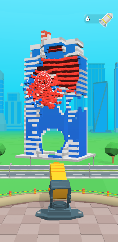 En este juego, tu tarea es destruir edificios usando cohetes al comienzo del nivel.