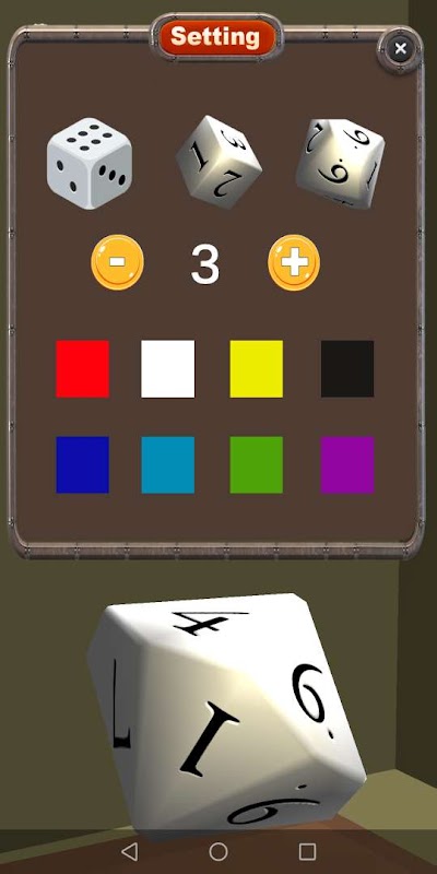 • Full screen toggle to avoid distracting UI and help focus on the dice