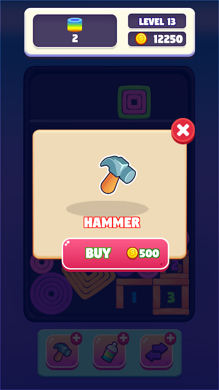 • Martillo para destruir los lanzamientos que bloquean tu progreso en el juego de rompecabezas de clasificación.