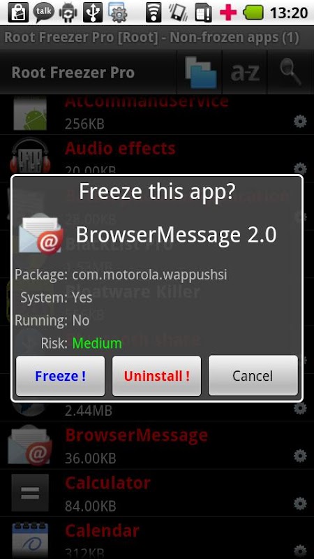 Desinstalación # root, congelador hinchazón, aplicación del sistema removedor