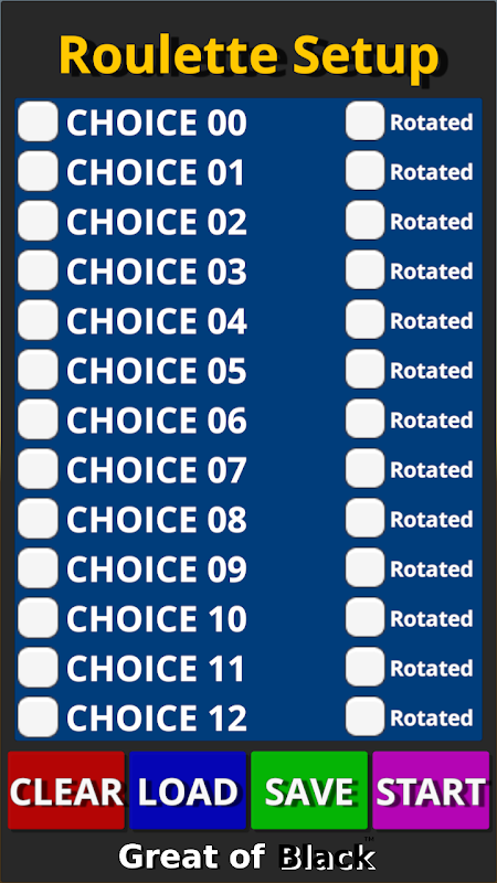 Roulette Spinner es una herramienta gratuita para hacer girar una ruleta virtual. Es útil para fiestas cuando necesitas hacer una elección aleatoria. Puede proporcionar (y guardar) hasta 13 opciones (si es necesario, las opciones se pueden duplicar). Puede cargar la configuración de su elección guardada para la próxima ejecución de la aplicación. También puede desmarcar temporalmente algunas opciones cuando sea necesario.