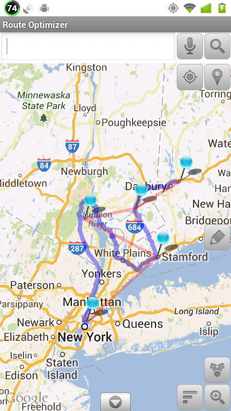 Order in which the stations are set in the view of the slider in is displayed, to visit after optimization is displayed. Also, when you tap the button on the left edge, a transition to Google navigation.