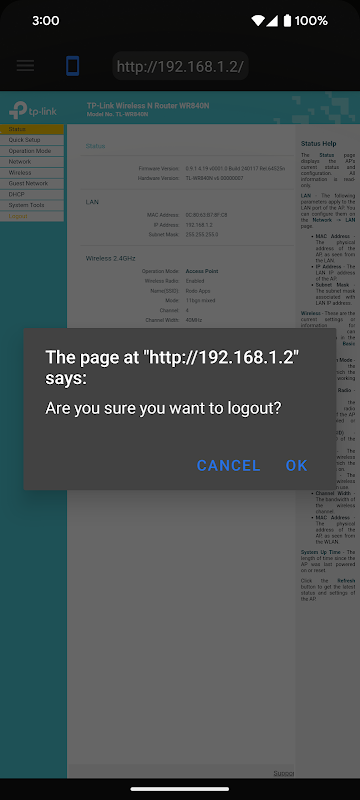 Información de Router Settings APK