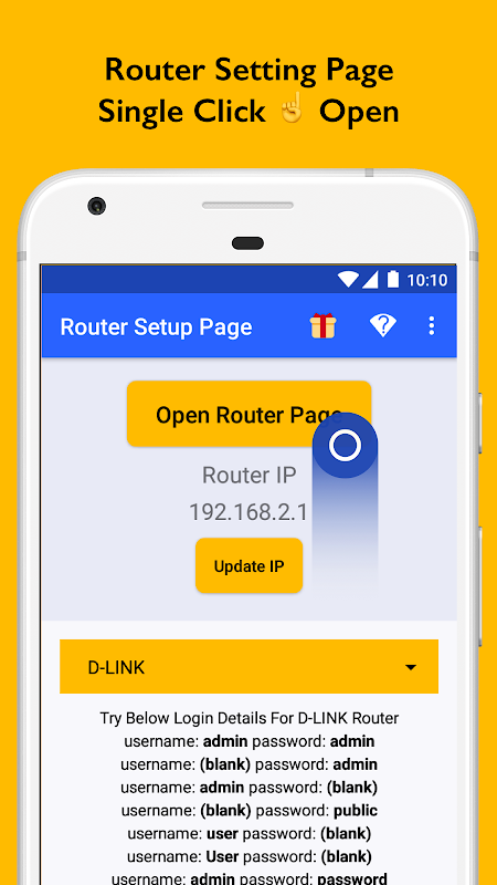 With this app you don’t need to manually type 192.168.0.1 or 192.168.2.1 etc… enjoy!!