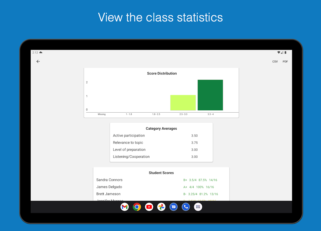 • Genere un PDF combinado con todas las rúbricas para todos los estudiantes de una clase
