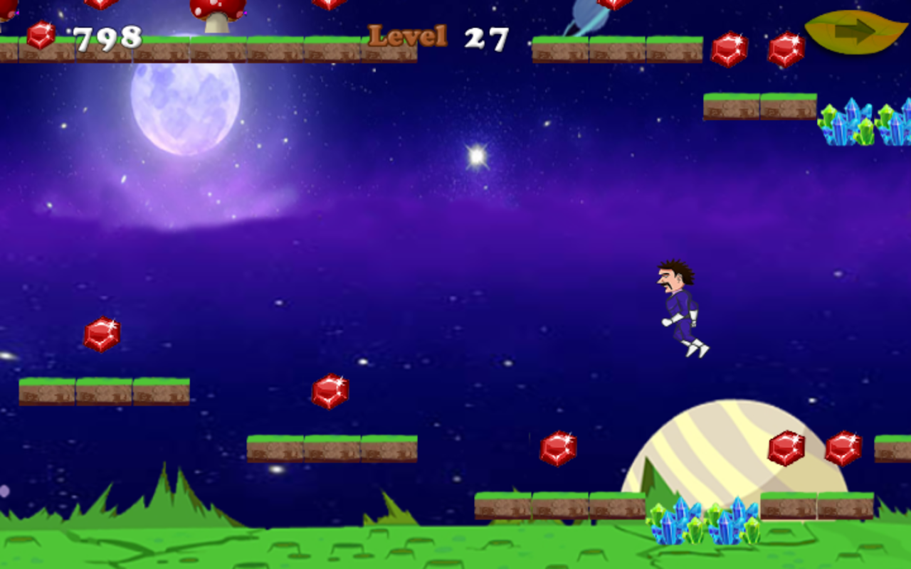 Running and collecting the Red gems is major task for getting high score. Naturally just tap the mobile jump and avoid from the Alien ,Rock and special gems. 3 modes and stunning 105 levels.
