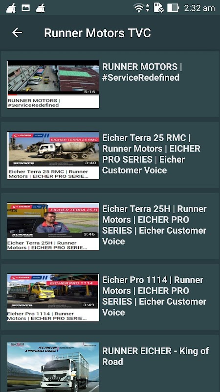 El cliente de RUNNER EICHER puede obtener fácilmente información sobre los productos EICHER. Esta aplicación es totalmente gratuita. Solo para el usuario que puede obtener la información actualizada de todo tipo de productos RUNNER EICHER. Todos los distribuidores, puntos de servicio y centros de repuestos mostrarán un mapa cercano en todo el país por región.