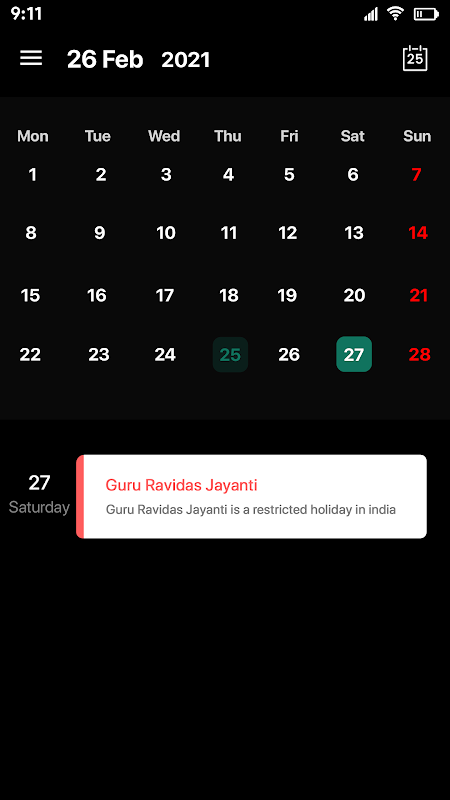 • Track upcoming long weekends and holidays in flag calendar with holidays