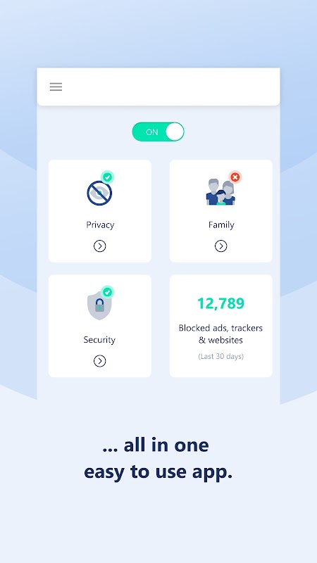 Controle la conexión a Internet de su dispositivo y elija qué bloquear: publicidad, rastreadores, sitios maliciosos, fugas de datos y privacidad, contenido para adultos e inapropiado para niños, y mucho más.