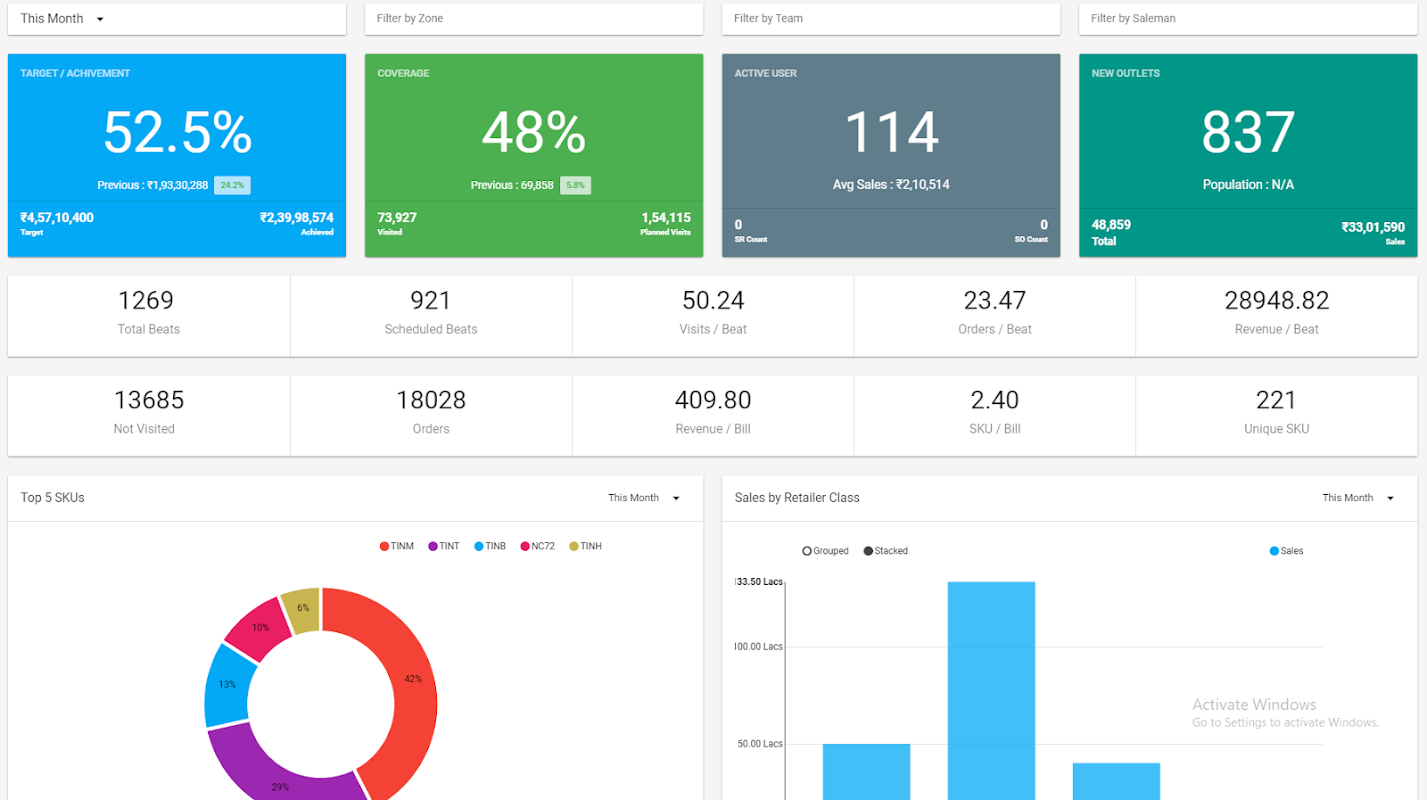 SalesDiary viene con un sistema integrado de administración de distribuidores (DMS). Puede gestionar entregas de pedidos, stock, pagos y pagos pendientes en una sola aplicación móvil. SalesDiary DMS ha ayudado a aumentar las tasas de cumplimiento de pedidos en un 60% y reducir las demoras en la recolección de pagos en un 45%.