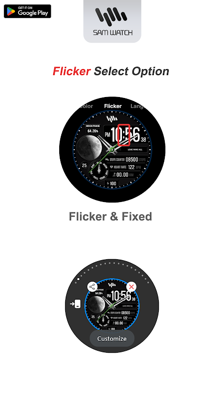 *Las aplicaciones para teléfonos inteligentes son aplicaciones adicionales que admiten la descarga de aplicaciones en dispositivos Watchface. Puede ser diferente de la captura de pantalla de la esfera del reloj de la aplicación del teléfono inteligente y de la captura de pantalla de la esfera del reloj que realmente se descargó. La mayoría de los productos de aplicaciones Watchface de SamWatch incluyen aplicaciones para teléfonos inteligentes.