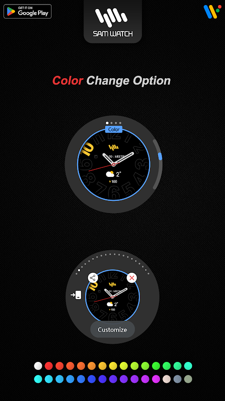 *La aplicación para teléfonos inteligentes es una aplicación adicional en la aplicación Watchface que explica la guía de descarga. Puede ser diferente de la captura de pantalla de la esfera del reloj de la aplicación del teléfono inteligente y la captura de pantalla de la esfera del reloj que realmente se descargó. La mayoría de los productos de la aplicación Watchface de SamWatch incluyen aplicaciones para teléfonos inteligentes.