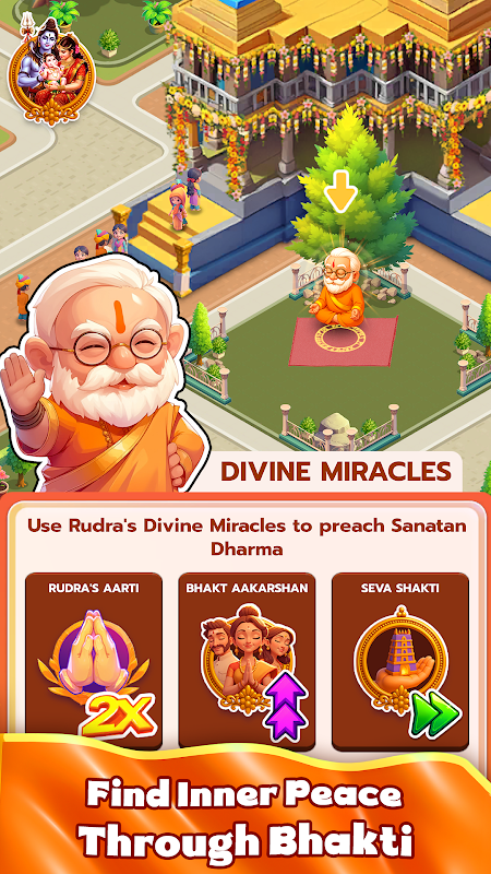 📈 Progresa con la Divinidad: Sube tu Nivel de Divinidad y desbloquea milagros como clínicas gratuitas, campañas de donación de alimentos y enseñanzas espirituales para tu comunidad Sanatan. Progresa en este simulador y magnate elevando tu Templo Mahadev.