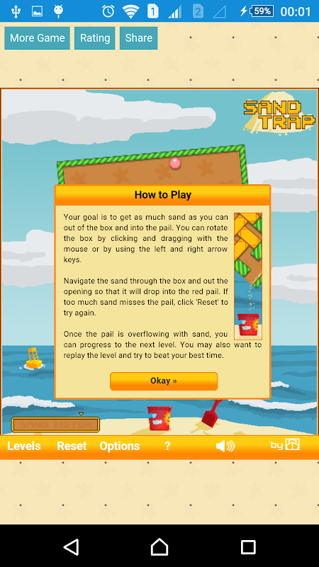 - Once the pail is overflowing with sand, you can progress to the next level. You may also want to replay the level and try to beat your best time.