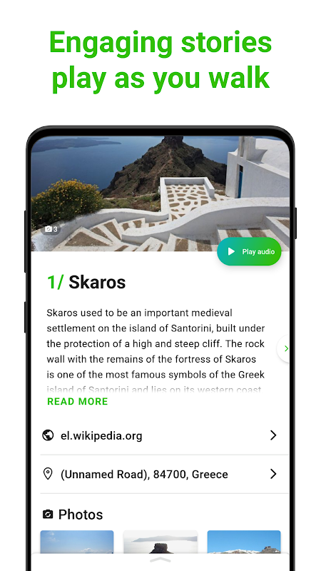 SmartGuide no permitirá que se pierda y no se perderá ninguna vista obligada. SmartGuide utiliza la navegación GPS para guiarle por Santorini a su conveniencia ya su propio ritmo. Turismo para el viajero moderno.