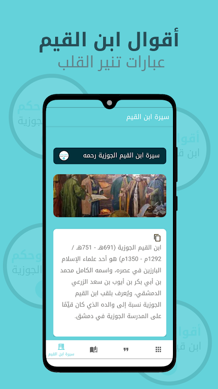 La aplicación de los dichos de Ibn al-Qayyim, que Dios tenga misericordia de él, proporciona una selección de la sabiduría y los dichos más maravillosos de Ibn al-Qayyim.