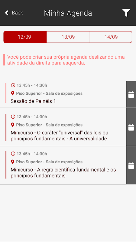 Todavía puede marcar y configurar su propio calendario, y la aplicación le notifica con anticipación sobre las próximas actividades de la reunión, noticias de eventos y posibles cambios en la hora, el lugar y la información importante.