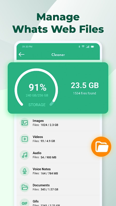 La aplicación WhatsApp Cleaner ahorra un amplio espacio al limpiar las imágenes, videos, documentos y caché enviados por WhatsApp.
