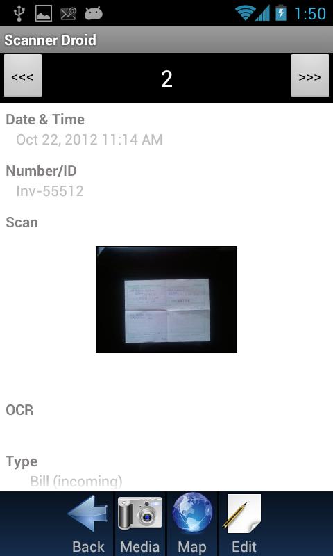 La aplicación Registrador Droid de MajorForms ofrece el uso de un teléfono inteligente o tableta como un escáner con reconocimiento óptico de caracteres (OCR) incorporado. Tome una fotografía de cualquier documento y permita que el OCR reconozca el texto de modo que se pueda editar, copiar o traducir. La velocidad a la cual se pueden escanear documentos es tan fácil como tomar una fotografía--una increíble ventaja sobre escáneres tradicionales. Si tiene fotografías antiguas, la aplicación permite analizarlas y almacenarlas como álbumes personalizados. Y una vez que el documento ha sido escaneado, se puede organizar con otros documentos y almacenarlo para su posterior consulta. Permitimos que cada documento sea numerado y ofrecemos una selección de opciones en cuanto a qué tipo de documento está siendo almacenado. Como ayuda para asistir en la identificación posterior de los documentos, la aplicación registra una marca de tiempo y las coordenadas del GPS relacionados con el momento en el cual el documento se escaneó. Además, se pueden añadir comentarios sobre cada documento escaneado (con entrada de audio si se desea) junto con otras imágenes, videos, etc. que desee asociar al documento. Los contactos también pueden asociarse con cualquiera o con todos los documentos, ya sea agregando la información sobre el contacto asociado con el documento o importando una o varias personas de sus contactos de Google.